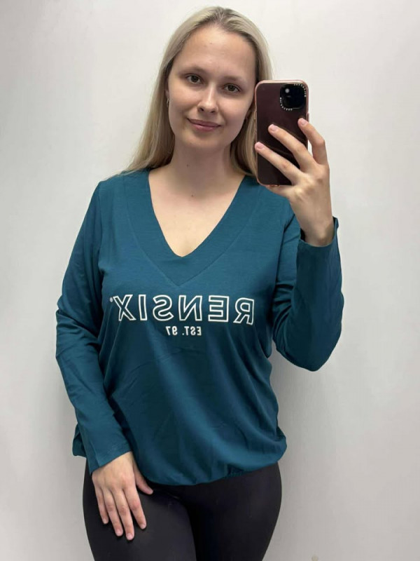 Rensix felső V nyakú hosszúujjú gumis aljú RENSIX EST97 felirat kobalt 2025