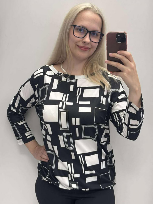 Rensix felső kereknyakú hosszúujjú gumis aljú fekete/fehér kocka mintás 2025