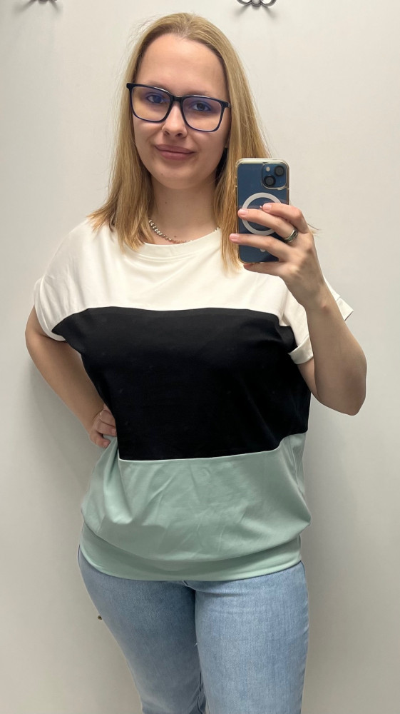 Rensix felső kereknyakú passzés aljú fehér/fekete/menta 2025