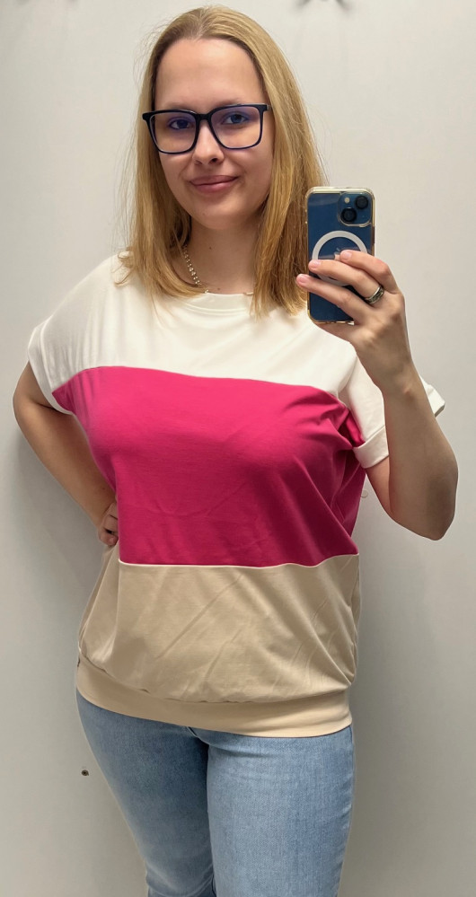 Rensix felső kereknyakú passzés aljú fehér/pink/bézs 2025