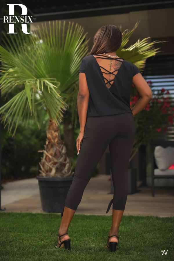 Rensix gumis derekú hátul X-pántos póló fekete