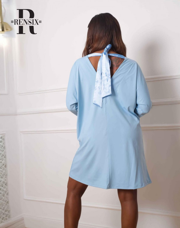 Rensix ruha V nyakú elől hátul, hátul szatén megkötős babakék 2025